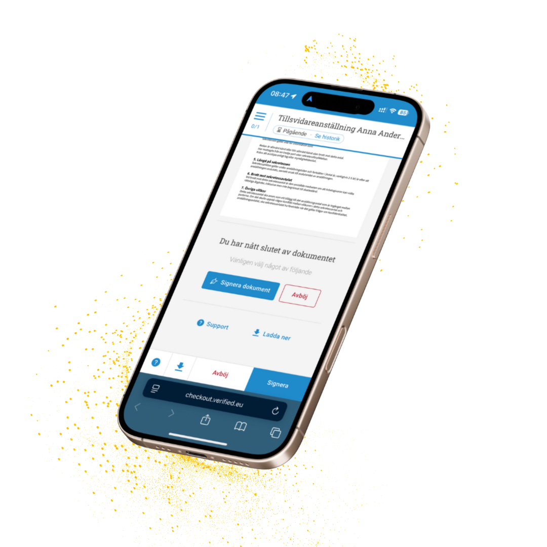 Ladda upp ditt dokument, skicka för signering och ha full kontroll över alla avtal med våra inbyggda påminnelser och fritextsökning.